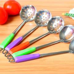彩色手柄不锈钢汤勺厨房煲汤盛汤搅拌勺子可挂式漏勺火锅勺