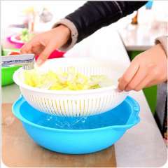 创意优质炫彩塑料圆形双层沥水篮 | 厨房洗菜篮水果盘蔬菜筐T