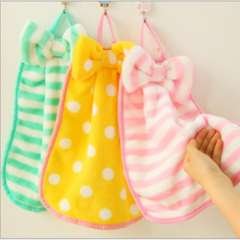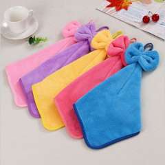 韩版加大加厚蝴蝶结珊瑚绒擦手巾 | 超强吸水挂式厨房毛巾