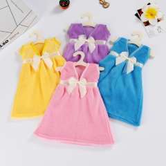 可爱连衣裙加厚珊瑚绒擦手巾 | 蝴蝶结加大加厚吸水挂式厨房毛巾