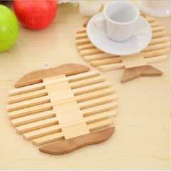 趣味厨房竹制苹果鱼型杯垫隔热防烫餐垫锅垫子