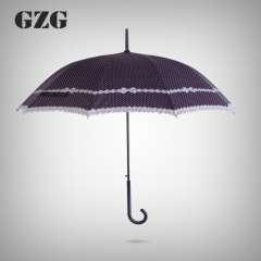 gzg 韩版创意伞长柄弯钩手柄伞时尚波点女生花边雨伞