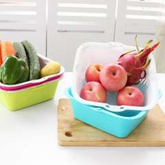 T[S-H]加高双层洗水果盆水果盘滴水篮塑料洗菜沥水篮洗菜盆204G