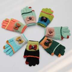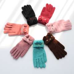 [1422]冬季韩版毛线手套 | 女士半触屏手套针织厚保暖全指手套 54G