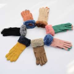 [4523]韩版绒口毛线手套 | 女士秋冬半触屏针织厚保暖全指手套50G