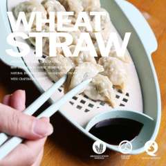 小麦秸秆带醋碟饺子盘 | 餐盘 | 创意家用餐具沥水盘子碟子托盘