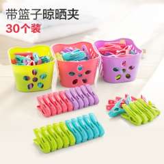 塑料小夹子带收纳篮衣服晾晒夹 | 强力防风夹内衣袜子晾衣夹