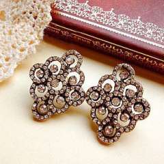 D0134】韩国时尚耳钉女复古流行耳饰耳环小饰品精致水晶12G