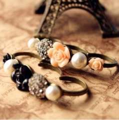 D1492】复古时尚珍珠戒指 | 韩版潮人女士指环对戒食指饰品女20G
