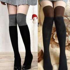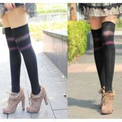 [1824]特价批发精梳棉波浪纹过膝露脚袜套 | 过膝袜套68G