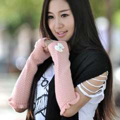 【0364】针织半指手套冬季女可爱保暖露指蝴蝶结点长短款手套 58G