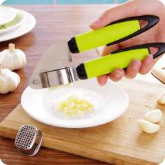 0193厨房小工具绿色手柄不锈钢压蒜器捣蒜器蒜泥器省力蒜蓉机130G