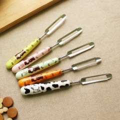 0283陶瓷手柄不锈钢削皮器瓜果刨 | 锯齿水果削皮刀 | 蔬菜挖孔器 25G