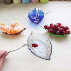 D3513】厨房用玻璃树叶小碟子手工彩色小盘子小吃酱醋调味碟180G