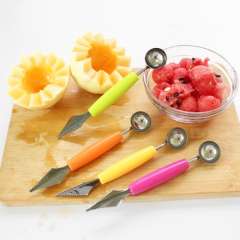 0578双头不锈钢水果挖球勺波纹雕花刀 | 西瓜水果拼盘挖勺 | 挖球器