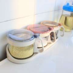 4395厨房玻璃缤纷调味缸调味瓶调味罐 | 连体带盖调味盒三个装770G