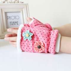 1579 半指手套秋冬新款雪纺小花加厚加绒保暖半指手套电脑手套64G