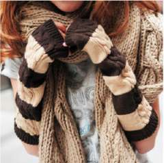 D1868]韩版经典麻花条纹保暖毛线手套 | 长手套护臂套52G