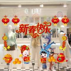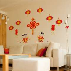 5155春节用品大型橱窗贴自粘性窗花 | 窗贴吉祥如意中国结娃娃窗花
