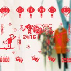 [D-C23]2016猴年新款窗贴 | 窗花 | 橱窗贴 | 恭贺新春卡通猴子雪花窗贴