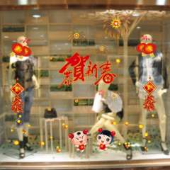 春节用品窗花窗贴恭贺新春灯笼烟花 | 娃娃福字橱窗贴纸店铺贴