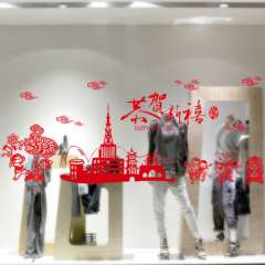 春节用品窗花窗贴恭贺新禧 | 大型橱窗贴 | 房屋城市祥云自粘窗花165G