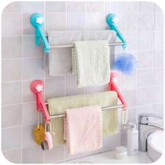 5065 韩版炫彩小花强力双吸盘双杆毛巾架 | 浴室卫生间浴巾收纳架
