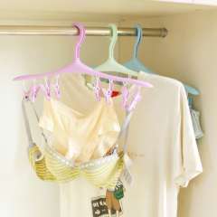 T3174]防风卡扣多功能衣架 | 8个夹子小件衣物袜子晾晒架 | 晾衣架85G