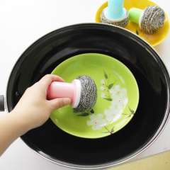1992 日式带柄钢丝球刷子清洁球 | 洗锅清洁刷 | 强力去污锅刷70G