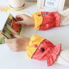 [3673]韩版可爱拼接中长款防水短绒小鱼袖套 | 套袖护袖厂家批发43G