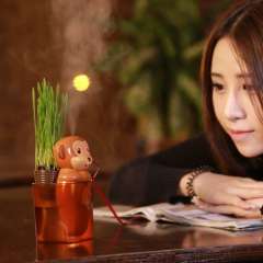 厂家直销 | 吉祥猴盆栽雾化加湿器 | USB卡通盆栽空气净化器