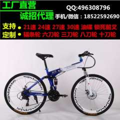 厂家直销骏骑X6折叠路虎山地自行车21/24/27速双碟刹双减震一体轮
