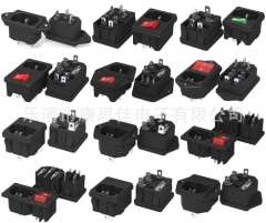 厂家供应带耳三合一AC电源插座电源尾座4脚带灯开关 | 带保险座