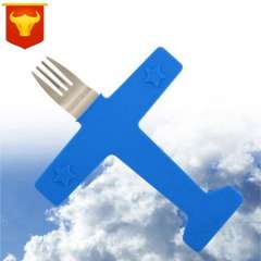 新款卡通造型 | 趣味儿童餐具叉勺套装 | 硅胶套防护 | 蓝红混装