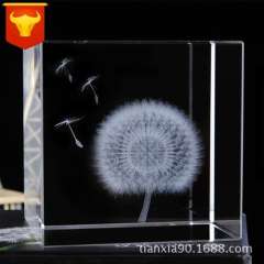 创意 | 桌面摆件透明四方水晶蒲公英标本 | 女生喜爱节日礼品
