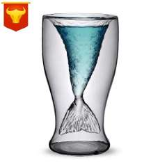 创意新品双层高硼硅玻璃杯 | 美人鱼饮料杯 | 双层玻璃酒杯