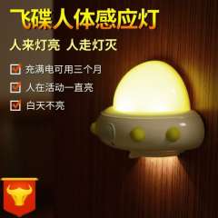 新款 | 新奇特led遥控小夜灯 | 飞碟人体感应灯USB充电创意卧室智能灯