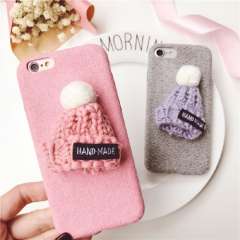 韩国立体可爱毛线帽子iPhone7 plus手机壳苹果6/6s毛绒布保护套女