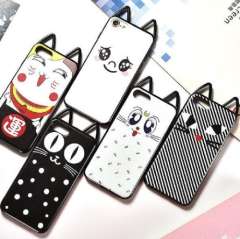 条纹猫咪iphone7手机硅胶壳 | 苹果6plus招财猫潮女新款黑白猫耳朵