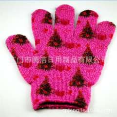 彩色涤纶, 绵纶沐浴手套, 有按摩和去死皮的作用.