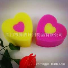 供应:多层心形沐浴海绵, 色彩鲜艳美观.