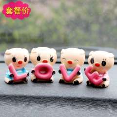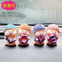 可爱love小猪汽车树脂摆件车内创意装饰品4个装T06-3C\869-1