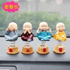 汽车创意摇头四不小和尚弹簧摆件佛宝平安树脂摆件D\1165-1