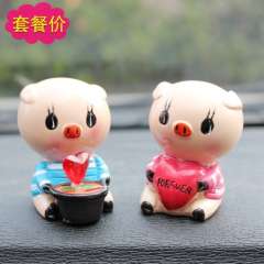 可爱LOVE猪爸猪妈情侣娃娃汽车摆件创意车载装2个装T06-3C\857-1