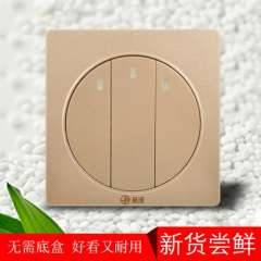 满极浦金色86型明装开关插座 | 明线开关三开双控开关三位开关