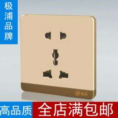 极浦新品86型墙壁开关插座电源墙壁插座拉丝面板5眼二三五孔插座