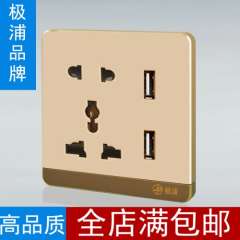 极浦智能开关圆五孔带双USB插座面板usb五孔插座墙壁USB充电插座