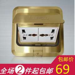 弹起式地板地面圆六孔插座/铜色底盒金属地插系列/厂家批发