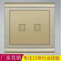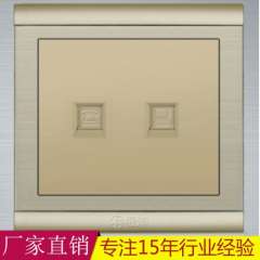 热销极浦2位网线墙壁插座双电脑插暗装86香槟金开关面板厂家授权