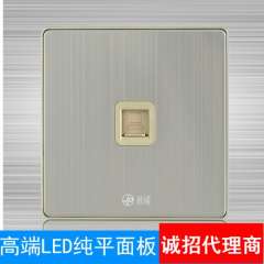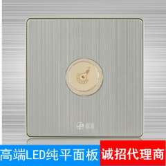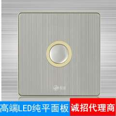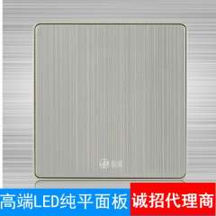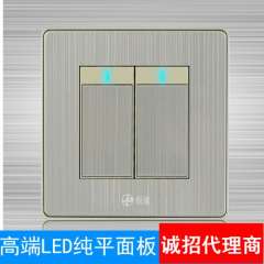 厂家直销香槟色一开双控 | 轻点式带LED开关不锈钢拉丝墙壁开关面板